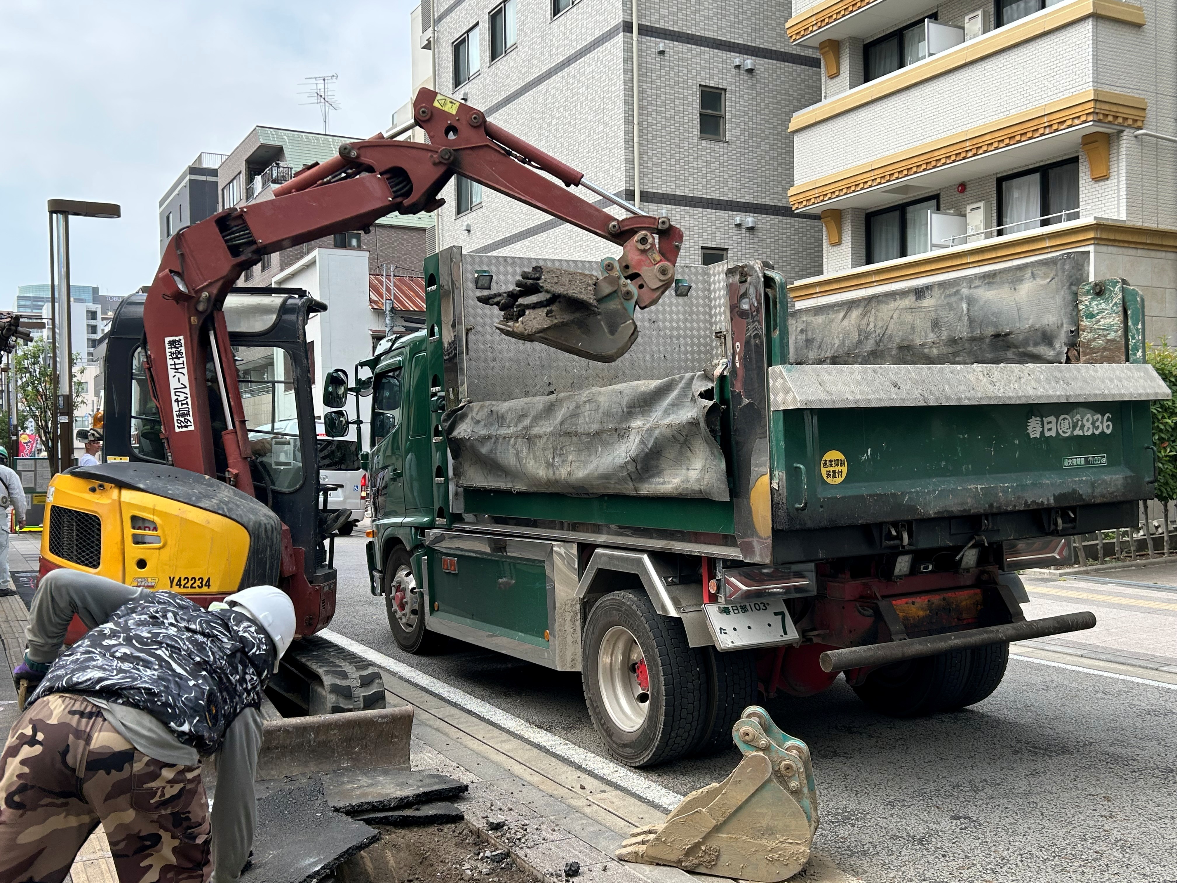 運び出した土砂や舗装材は、当社提携の中間処理場へ搬入し、法令に基づいた処理を徹底しています。インフラ整備の一環として、周辺環境や安全面にも配慮した対応を心がけております。